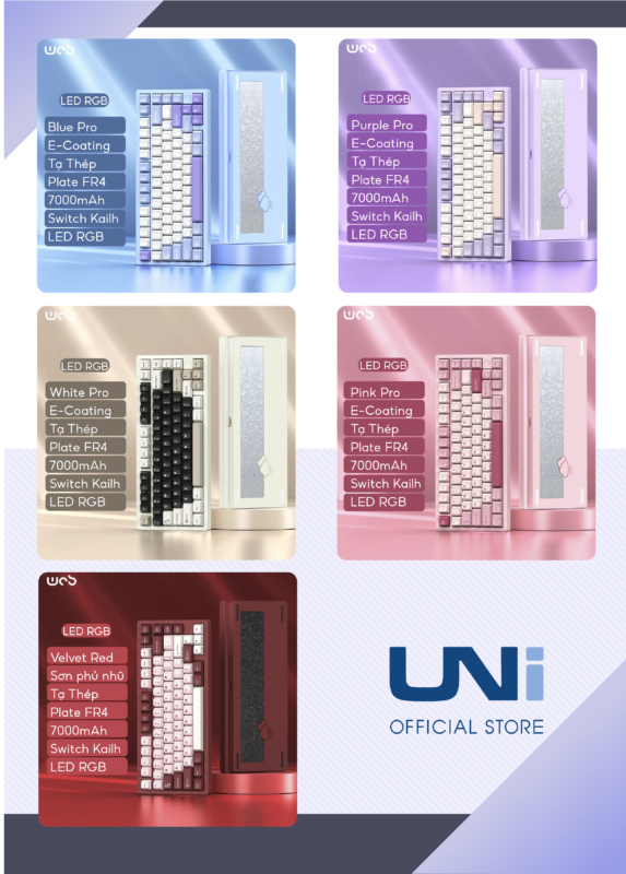 • Switch HMX Violet hoặc Kailh Cocoa Cream tùy bản