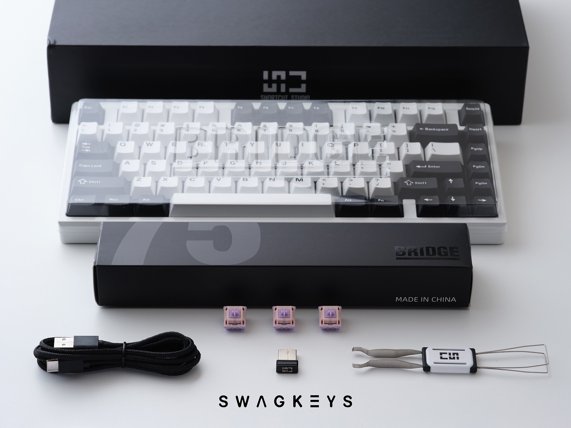 • Bridge75: 1.2mm flex cut, Hotswap, 3 mode, Không LED, phần mềm keymap VIA
