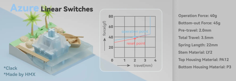 Có 2 tuỳ chọn về switch và plate phù hợp với 2 kiểu âm clack và thock
