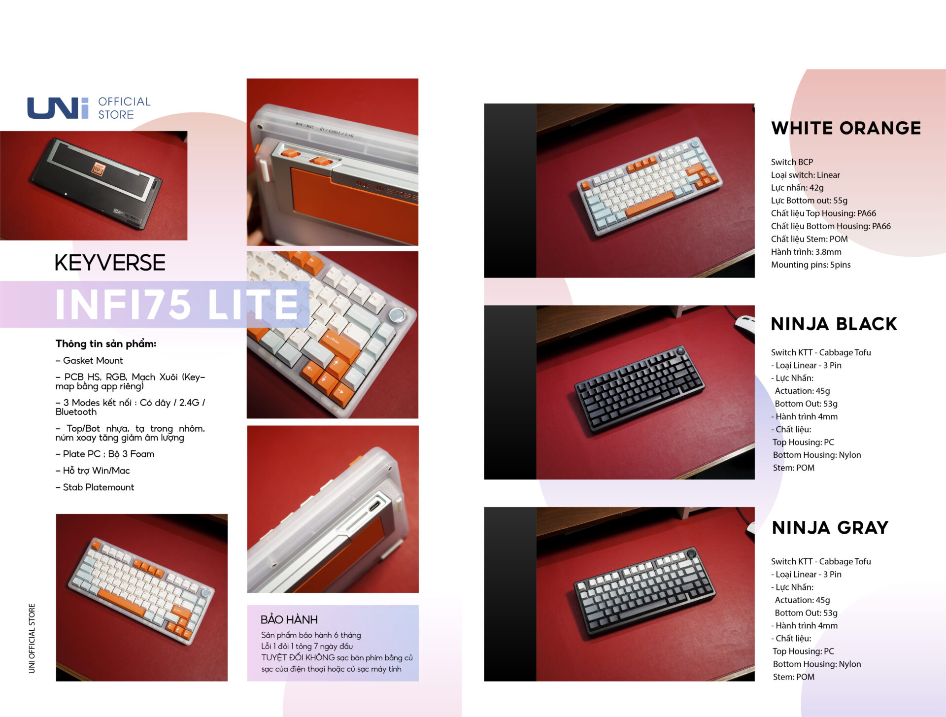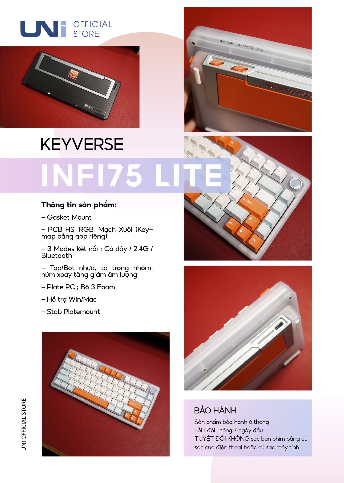 Infiverse infi75 Lite – Bàn phím cơ INFI75 Lite | Mạch Xuôi 3 Modes – UNI OFFICIAL STORE