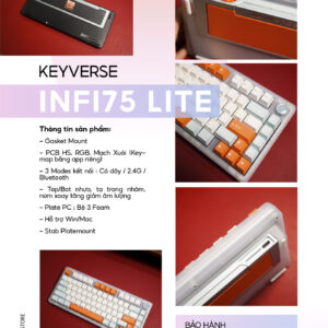 Đây là phiên bản rút gọn của Infi 75, với mức giá rẻ hơn gấp đôi nhưng trải nghiệm không mấy thua kém thì có lẽ, bản Lite này sẽ giúp anh em dễ dàng sở hữu một chiếc bàn phím cơ đủ tính năng – đẹp tinh tế và gõ hay!