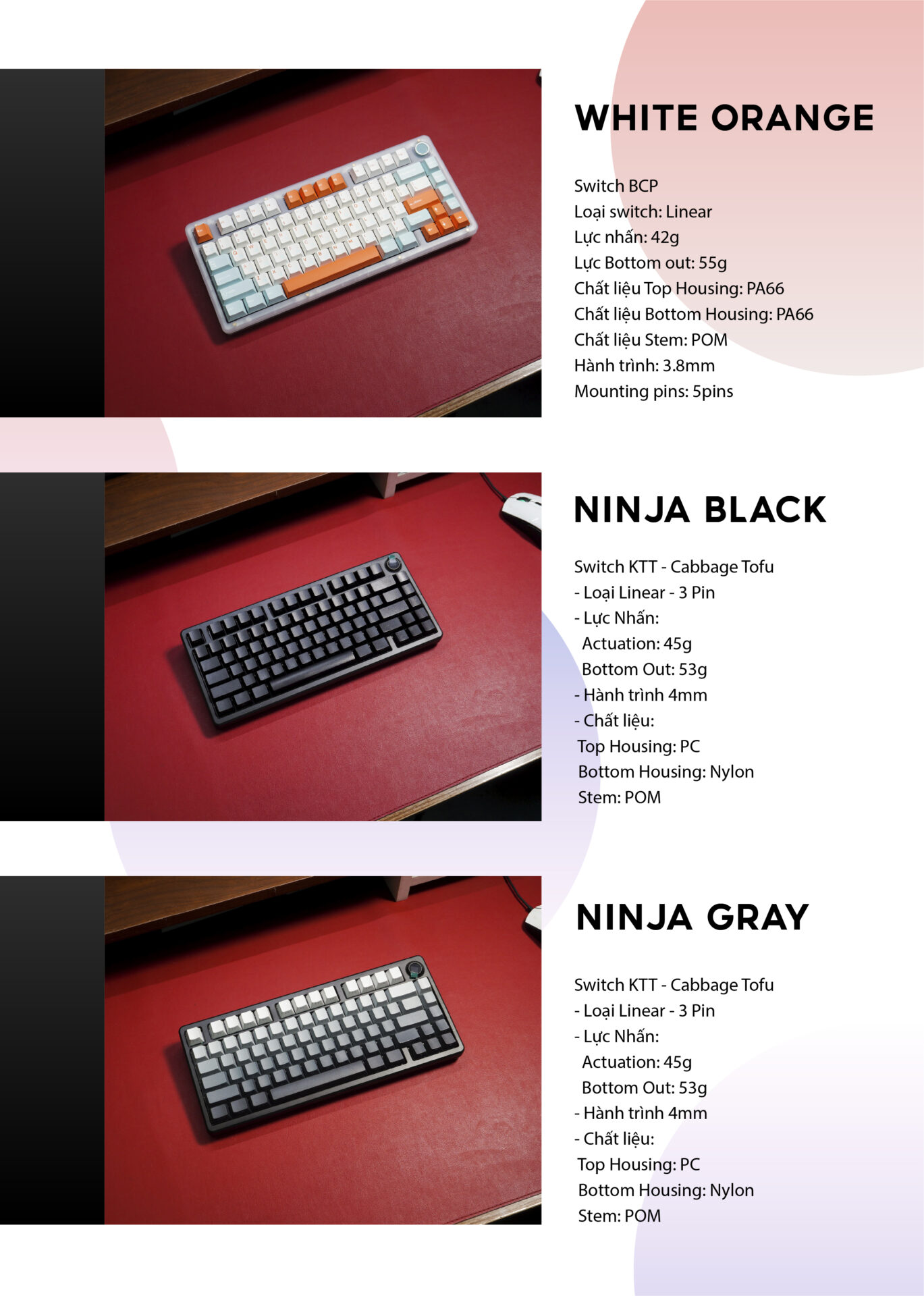 – Switch KTT Cabbage Tofu (đối với bản full switch keycap)