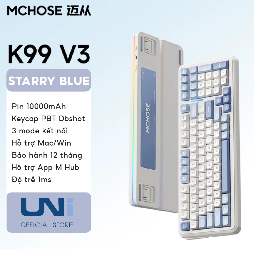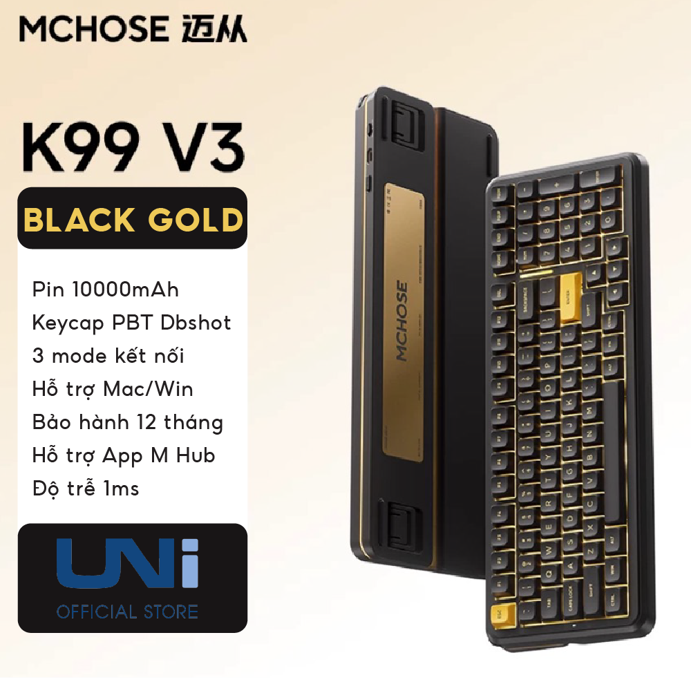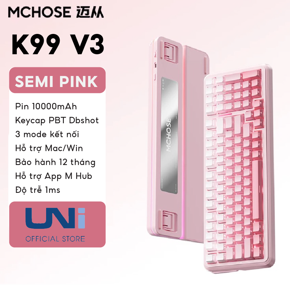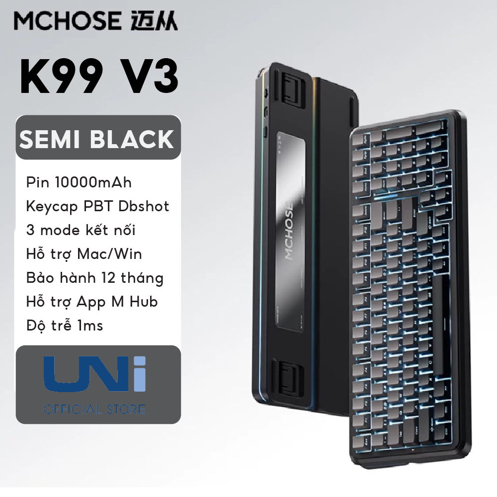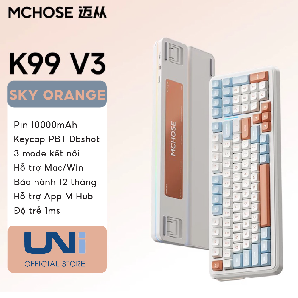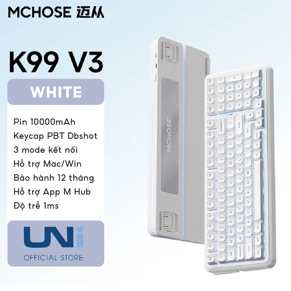 Sở hữu MCHOSE K99 V3 tại Unistore, bạn sẽ nhận được một phiên bản đã được tối ưu hóa về firmware năm 2026, đảm bảo kết nối 3 chế độ luôn ổn định và độ trễ thấp nhất. Đây là lựa chọn “Endgame” cho những ai cần một chiếc phím nhựa bền bỉ, tính năng cao cấp nhưng giá thành cực kỳ dễ tiếp cận.
