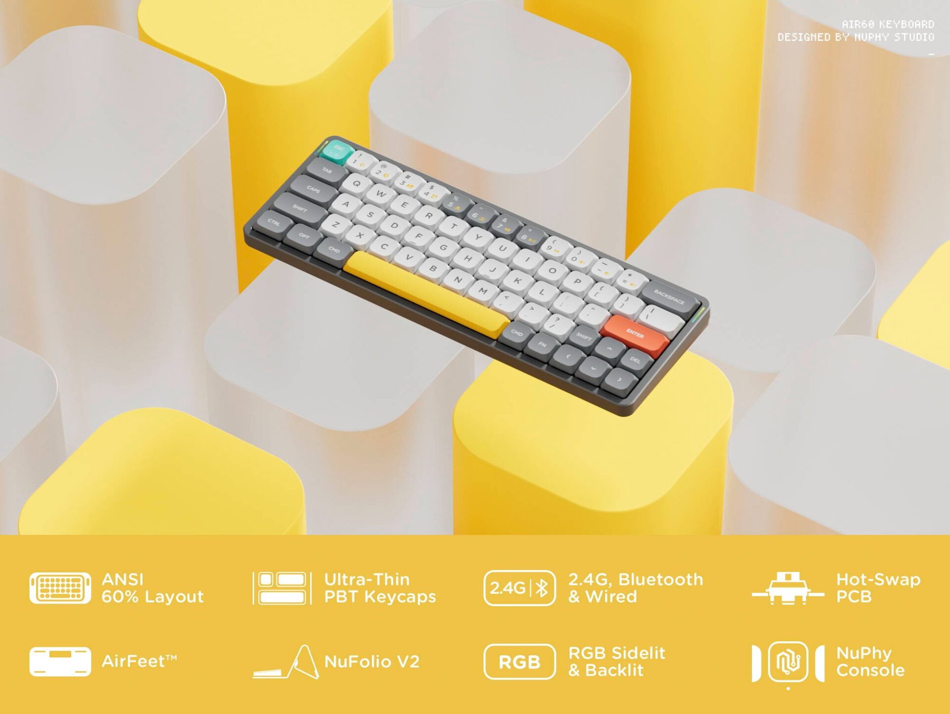 Bàn Phím Cơ NuPhy Air60 v2 – QMK/VIA (Gray/Black/White – Mới, Full box, Nhập khẩu) – UNI OFFICIAL STORE
