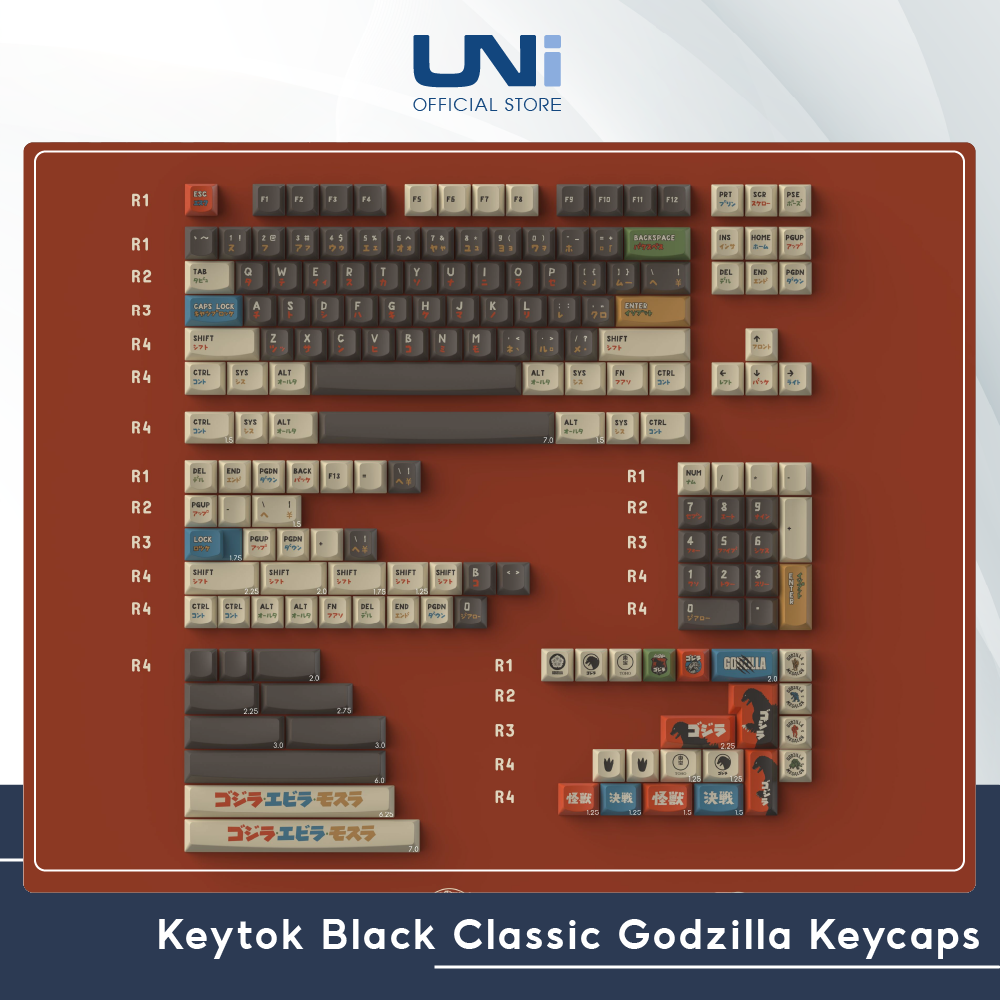 KeyTok Black Classic Godzilla Smile Profile Dye-Sub PBT Keycaps – UNI OFFICIAL STORE