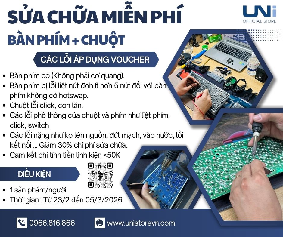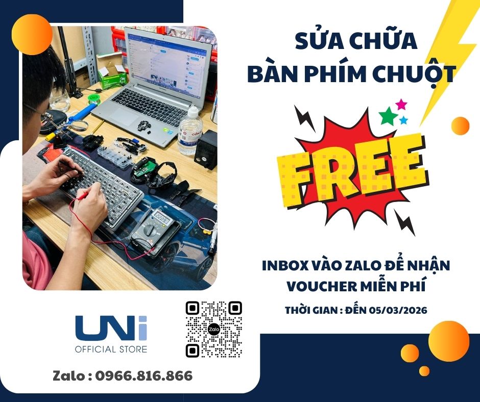 Bạn đang gặp ác mộng với lỗi double click? Bàn phím gõ chữ “A” ra chữ “N” hay liệt hoàn toàn các phím quan trọng? Đừng để những lỗi kỹ thuật nhỏ làm gián đoạn dòng ý tưởng của bạn. Tại Uni Official Store chúng tôi hồi sinh thiết bị của bạn với quy trình chuyên nghiệp, linh kiện chính hãng và mức giá cực kỳ hợp lý.